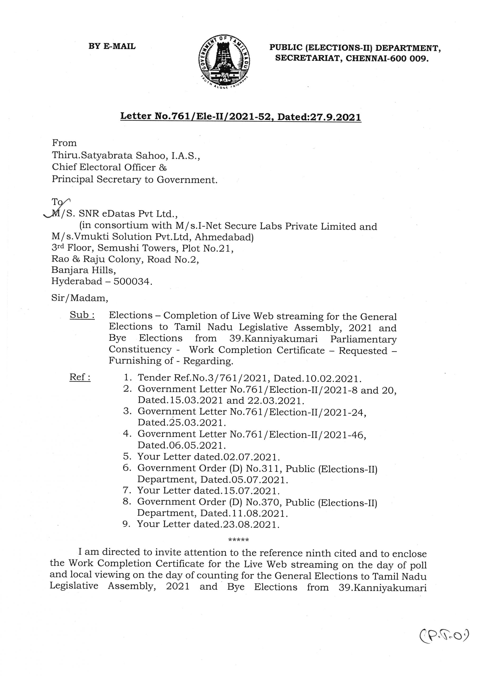 General Elections to Lok Sabha – 2019 Managed and executed the project of Live Web Streaming of covering 30,000 polling stations and 45 Counting centre across Tamil Nadu State. It is one of the World biggest web Streaming in Election till date.
